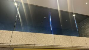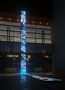 会場に入り、エスカレーターを降りた先に、3本のLEDバーが設置されています。